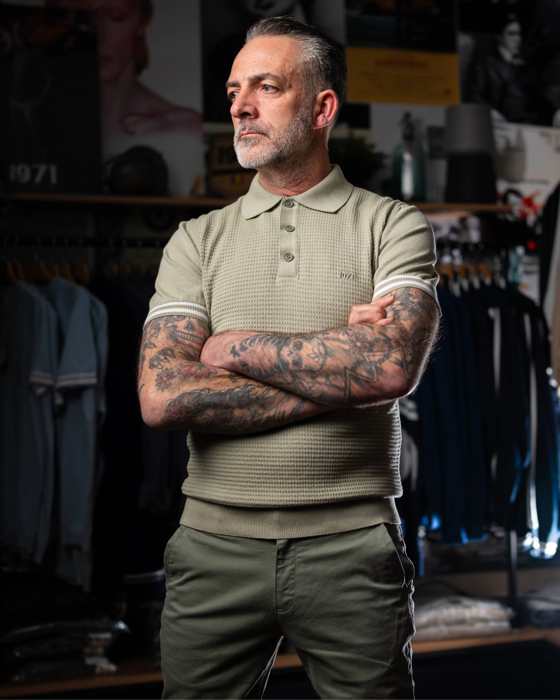 Pepito est une variation élégante de mon polo Charly. J’y ai ajouté un point de tricot rétro sur le panneau avant, inspiré des polos des années 1960 portés par Donnie Brasco, The Sopranos, et plus récemment Tulsa King.
